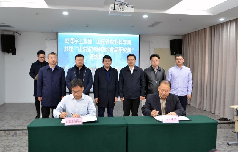 12月14日上午,威海市宇王集團與山東省農業科學院農產品加工與營養研究所關于“山東省特種功能食品研究院”項目簽約儀式在威海市經區智慧谷園區舉行。宇王集團董事長苗強與山東省農業科學院農產品加工與營養研究所主任孫金月、威海智慧谷投資運營有限公司總經理王利輝分別進行合作簽約,宇王集團董事長苗強與劉超博士簽署人才柔性引進合作協議